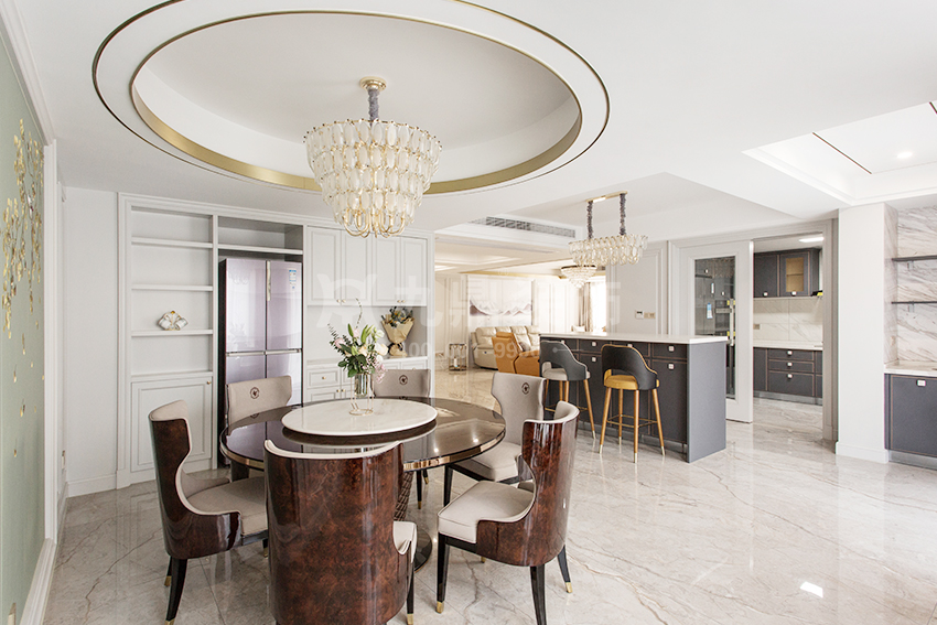 餐厅装修时,大家多会选择一些有食欲的色彩来搭配,但轻奢风格装修的餐厅空间,最多就是用绿植或干花来点缀,色彩依色是黑白灰为主,白色的墙面,搭配或白或灰或黑的餐桌,餐椅的色彩也是黑白灰色,简约的色彩搭配显得格外精致。硬质材料的桌面与软质材料的餐椅,纯粹的大道至简带来更加高级的品位。