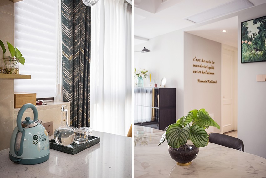 用做减法的方式 将过多的造型元素弱化,强化了材质,色彩的搭配。每一处的设计安排都源于主人的生活习惯,最大程度的契合主人的生活状态,审美要求。最终收获作品的落地,客户的认可。