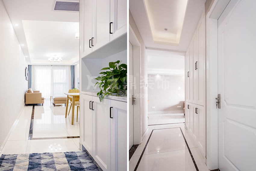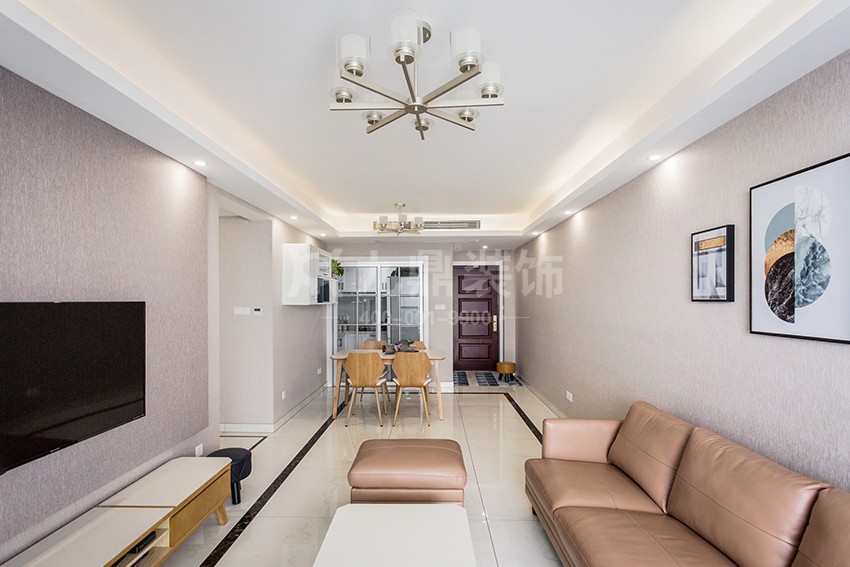 东方海岸装修案例设计说明:在选材上不再局限于石材、木材、面砖等天然材料,而是将选择范围扩大到金属、涂料、玻璃、塑料以及合成材料,并且夸张材料之间的结构关系,甚至将空调管道、结构构件都暴露出来,力求表现出一种完全区别于传统风格的高度技术的室内空间气氛。