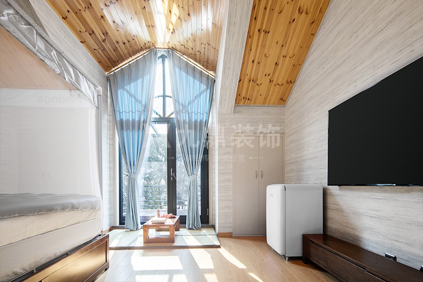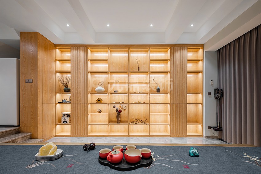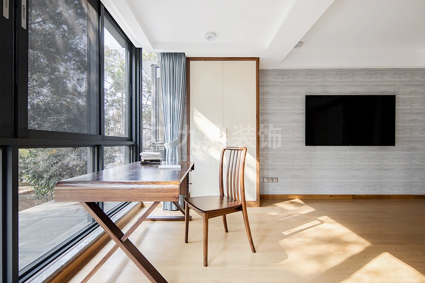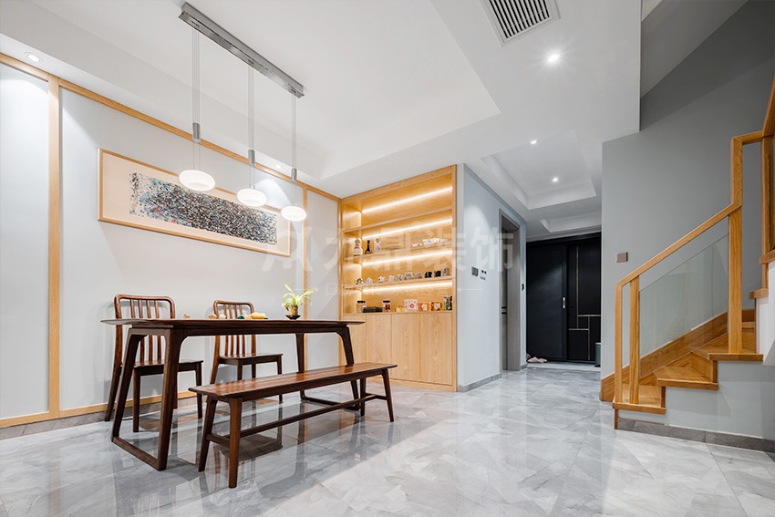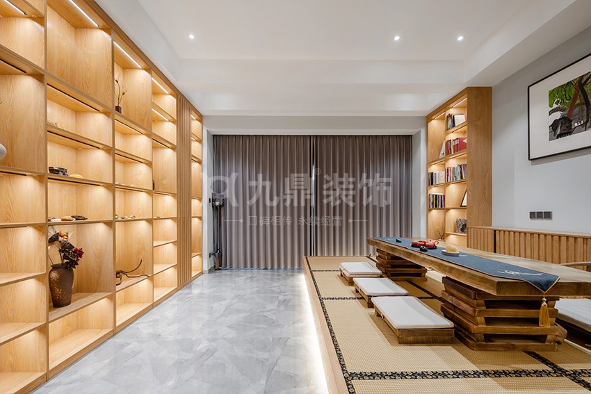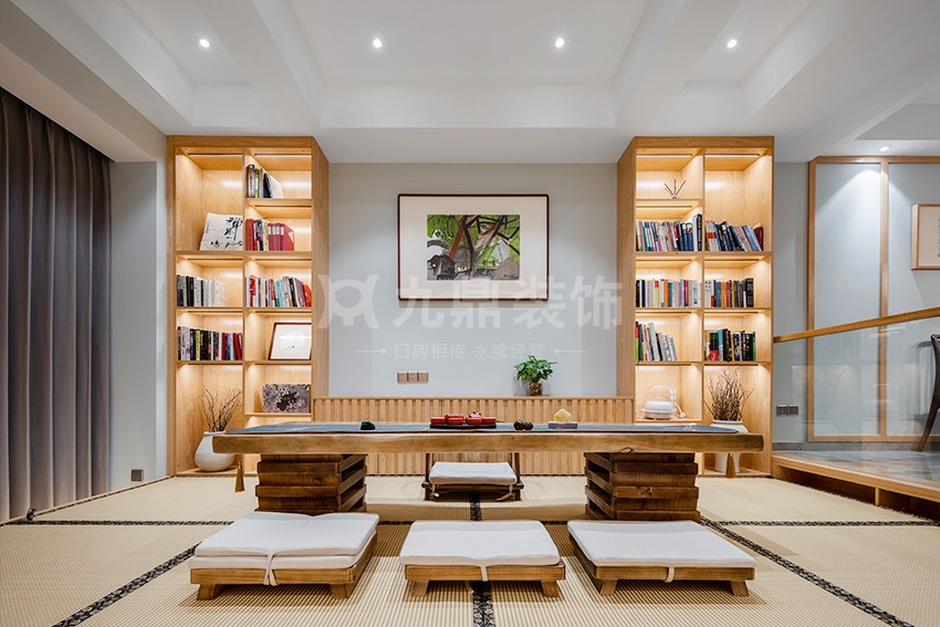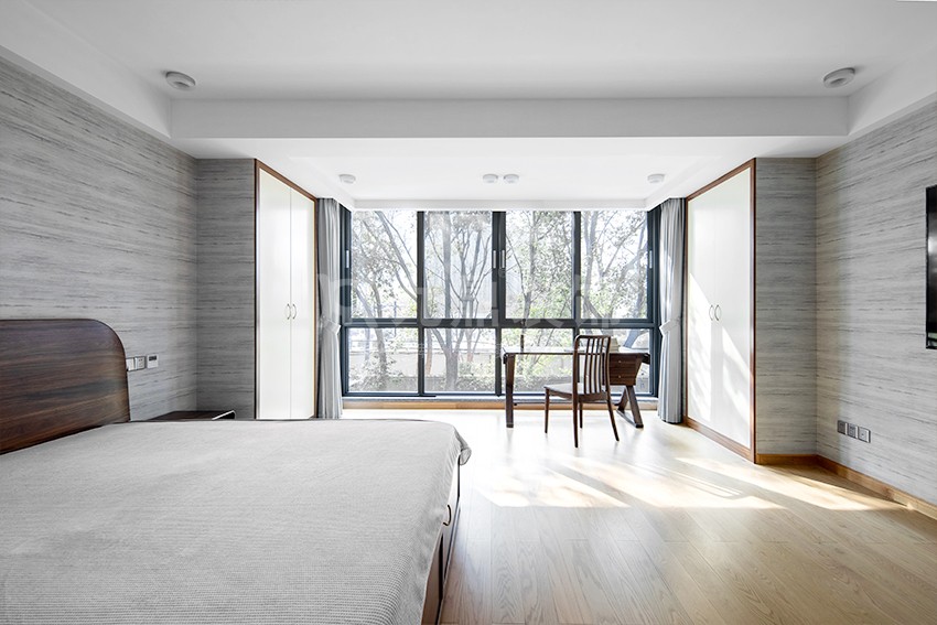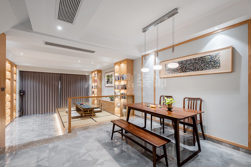华清山庄装修案例设计说明:它放弃了许多更复杂的曲线形状,并使用了清晰的装饰线条,可以增强房间空间感。清晰的线条,纯净的四面墙壁,悬挂的室内宫殿灯以及美化的遮阳伞展现了简约典雅的日式风格。