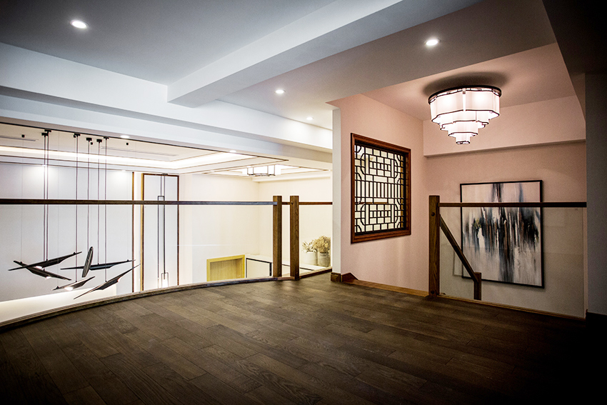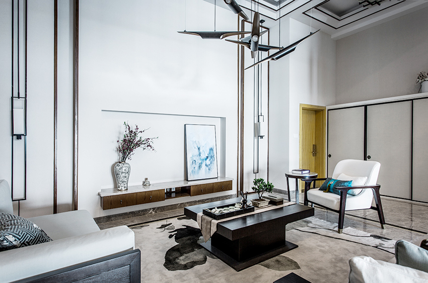 丽晶国际装修案例设计理念:本案运用现代的设计手法,融入了中式古典的设计元素,采用黑白主调,局部配以中国风的家私和软装,让空间层次丰富起来。