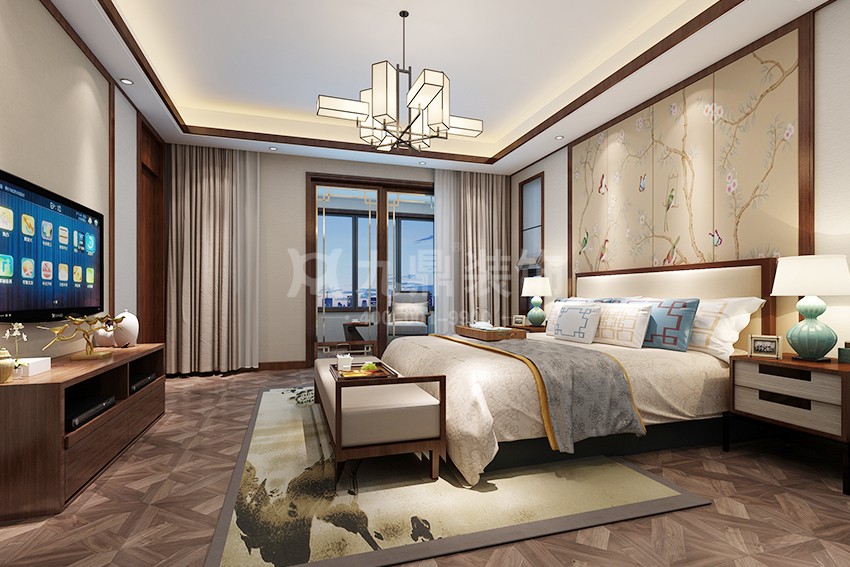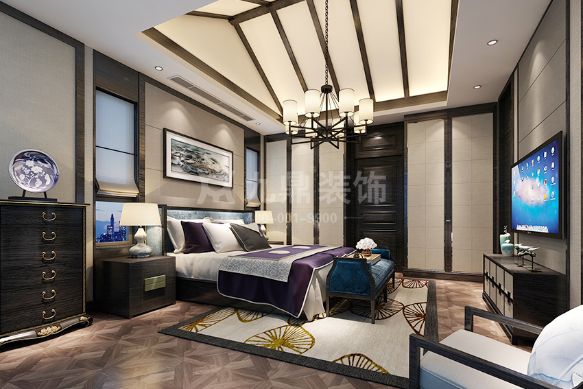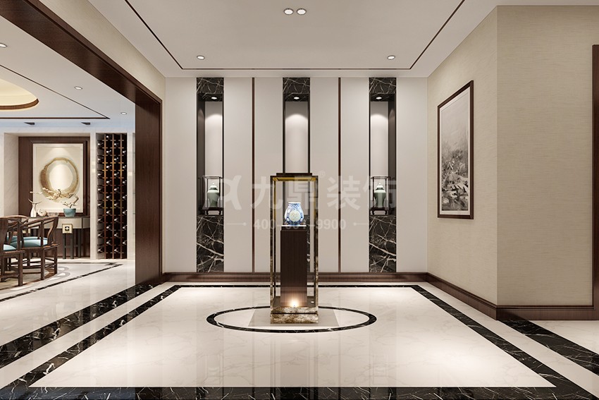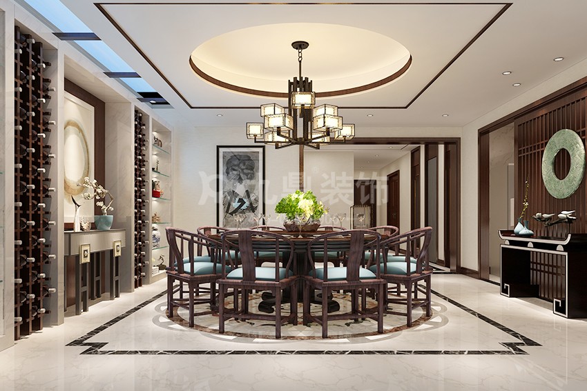 帝豪花园装修效果图设计说明:本案是南京城东地区比较高档的别墅,户主北京人,性格传统内敛, ,喜欢收藏中国的瓷器和名人字画,再结合该小区紧邻紫金山风景区,青山翠柏,视野开阔,决定以庄重大气的中式风格为该别墅的设计基调.
