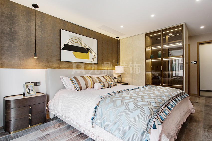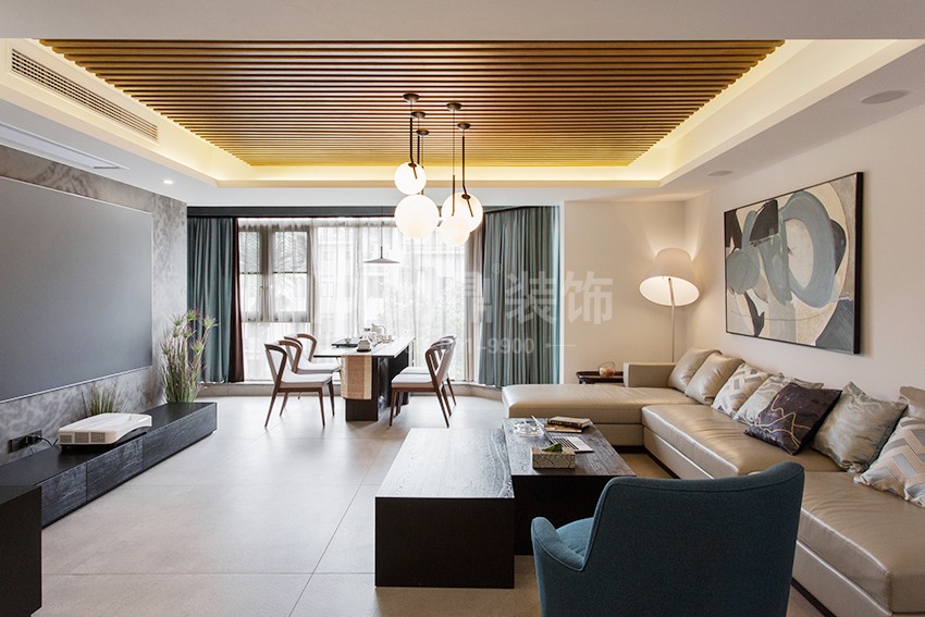 西溪名园别墅装修案例设计说明:纵观整个装修,看起来比较简洁、大方,然而却并不简单:顶面无主灯设计,是现在