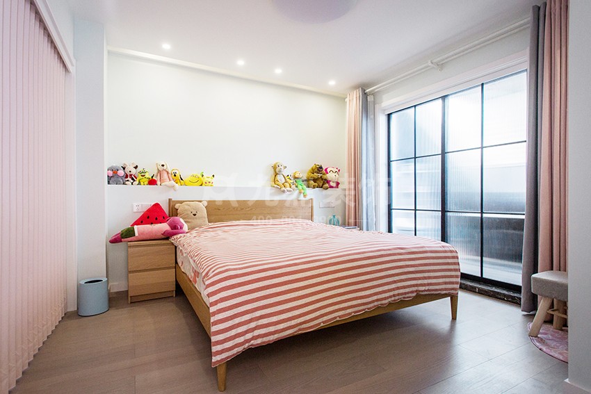 亲亲家园装修案例设计说明:现代简约风格设计说明通过家具、吊顶、地面材料、陈列品甚至光线的变化来表达不同功能空间的划分,而且这种划分又随着不同的时间段表现出灵活性、兼容性和流动性,如休憩空间和餐饮空间通过一个钢结构的夹层来分割,阁楼上的垂幔吊顶又限定了床的范围,这是典型的现代空间设计手法。
