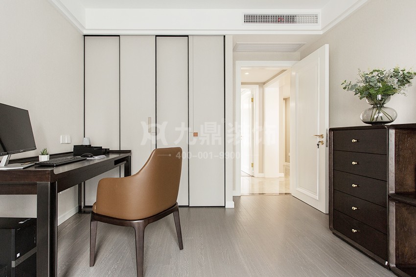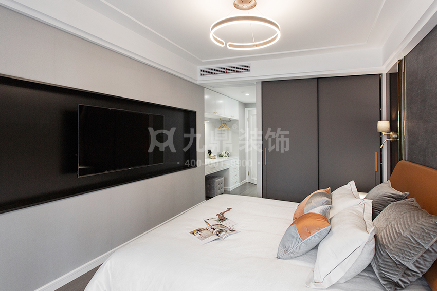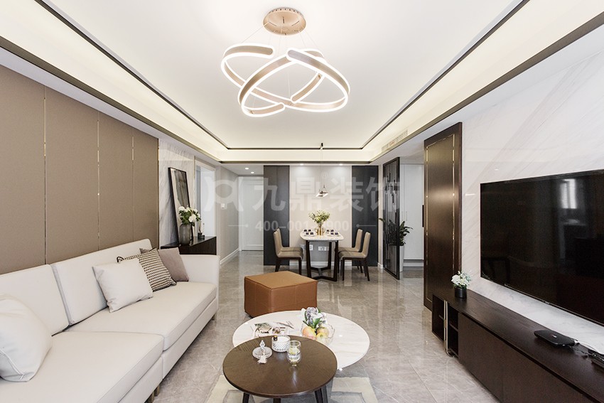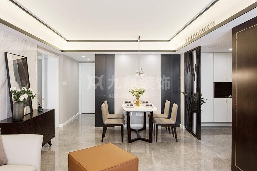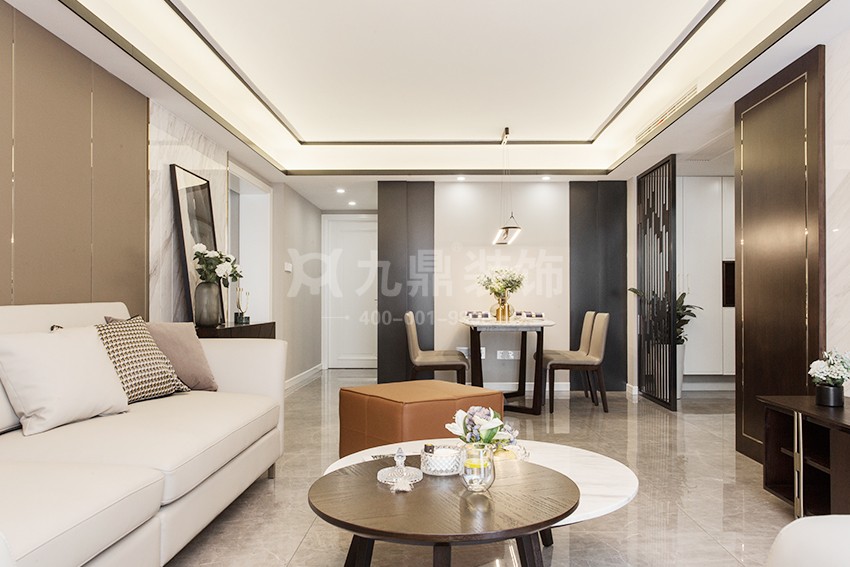 和谐家园装修案例设计说明:现代风格的空间组织不再是以房间的组合为主,也不再局限于硬质的墙体,而是更加注重会客、学习和睡眠等功能性,并且通过家具、吊顶和地面材料、陈列品来表现不同功能的空间和划分,同时这种划分又随着不同的时间段表现出不同的灵活性、兼容性和流动性。