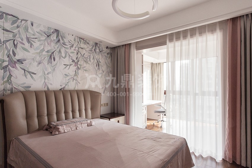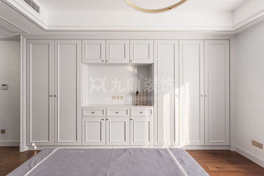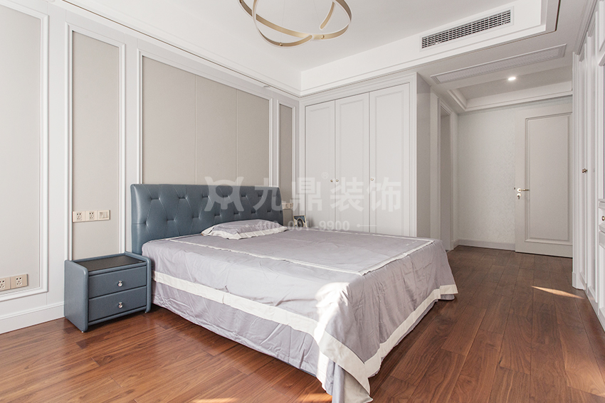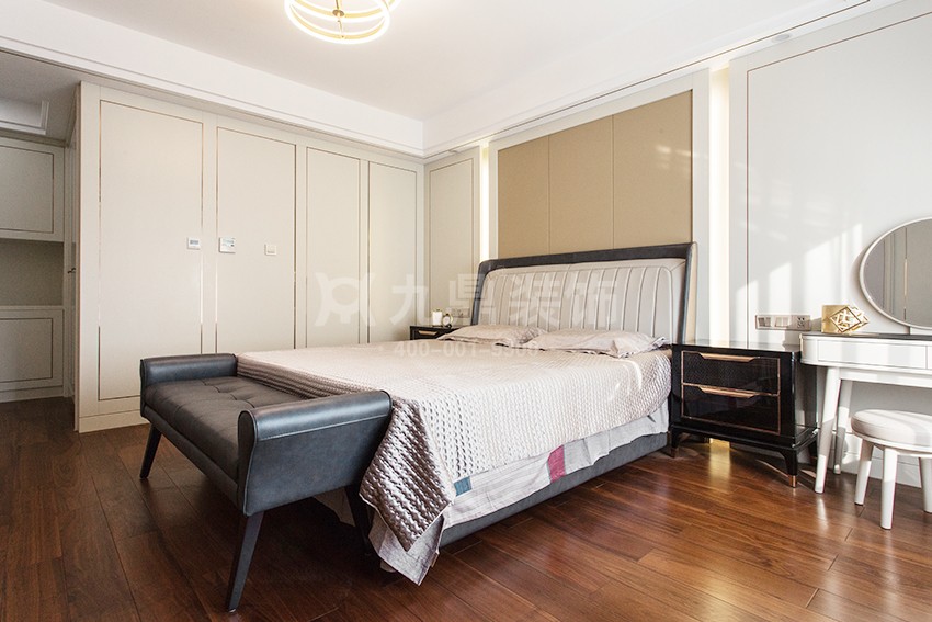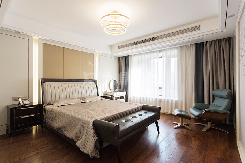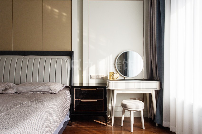 东海水景城装修案例设计说明:简约风格是现代年轻人的一直生活态度,是时尚的主体。不像有些设计师粗浅的理解的“直白”,比如床头背景设计有些简约到只有一个十字挂件,但是它凝结着设计师的独具匠心,既美观又实用。