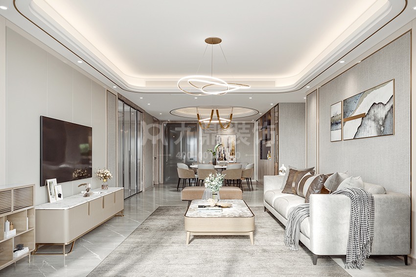 山水国际装修效果图设计说明:现代与古典的融合,强调简单中有奢华感受现代与古典的融合,低调奢华风格强调以现代与古典并重的设计原则,硬装修中强调现代设计手法,通过家具和部分软装来体现古典风格是低调奢华的重要特征。