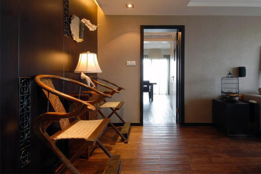 2、在中式古典风格中,镂空木窗棂固然必不可少,泼墨的山水画也是一定要有的。或一个转身,一个拐角,又或者某处不起眼的墙壁,就可以看到行云流水的书法帖或者末位近代名家的泼墨山水画了。这些都给中式古典风格注入了灵性的血液,使得居室间有着自己的文化气韵,自成高格。