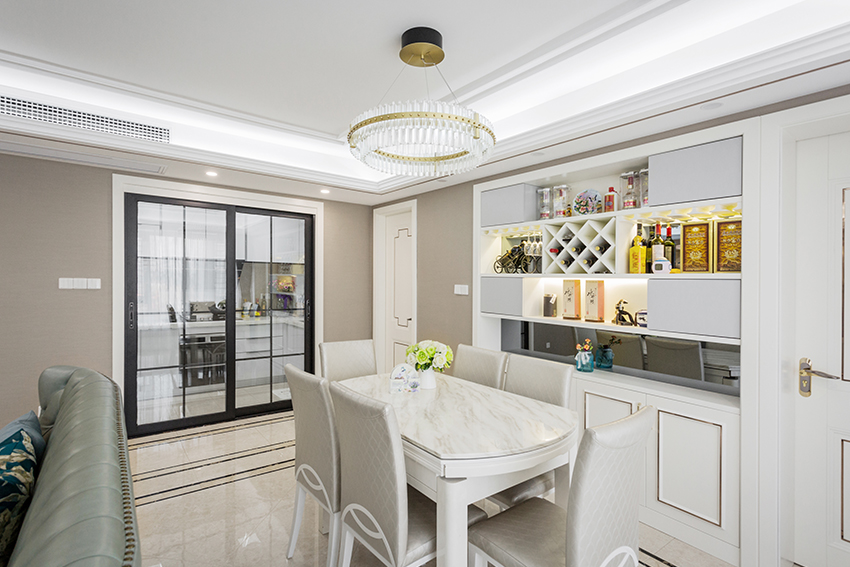 所谓轻奢以更简洁的、硬朗的直线条代替,如选用平滑的门板造型,简单的墙板等没有过多的雕刻修饰,也浓缩着意想不到的功能与细节,从而彰显了一种高品质的生活方式。