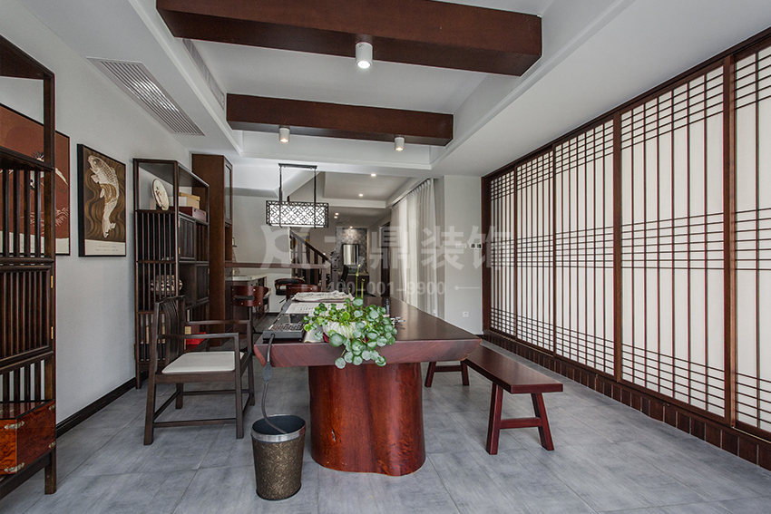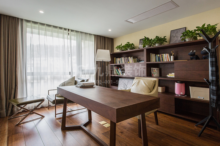 其次:新中式风格特点,没有一间书房,就别说自己家是新中式。不管是传统的中式风格,还是新中式,对于文化底蕴的要求都是极高的,因此,一间正宗的中式系列房子,必须有一隅空间要献给书香,当然这个空间可以不用那么明显的区域划分,可以是客厅的一角,也可以是楼梯转角的位置,总之有书香气才有中式风格的雅致。