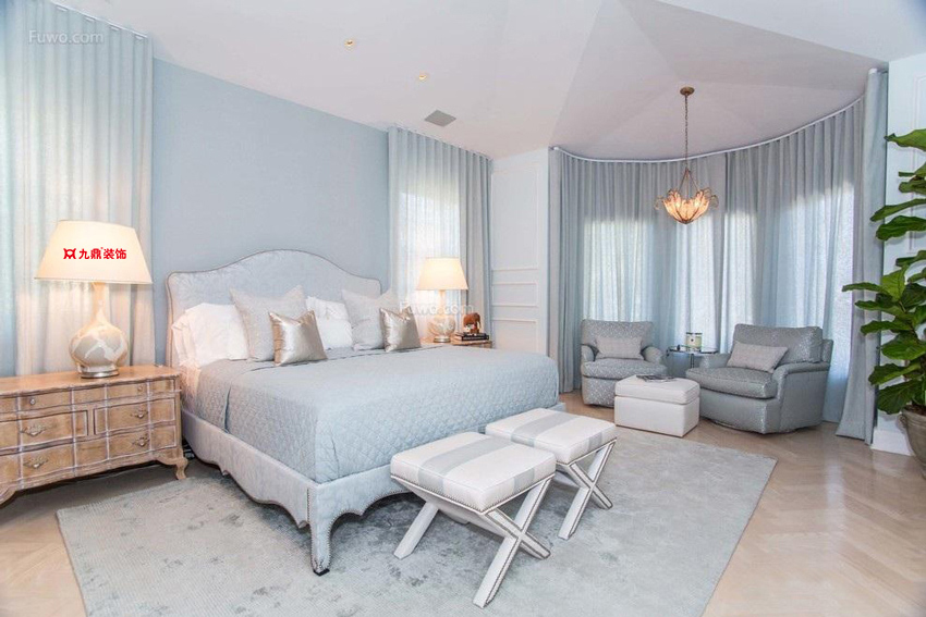 若你是个较难入眠的人,那么在房间色调上应强调宁静和温馨的氛围,这样有益于构建良好的休息气氛,比方说蓝色、粉色、米色系,都会让房间显得更加清新自然,因为冷色调具有缩小的视觉效果,使房间显得更加宽敞。
