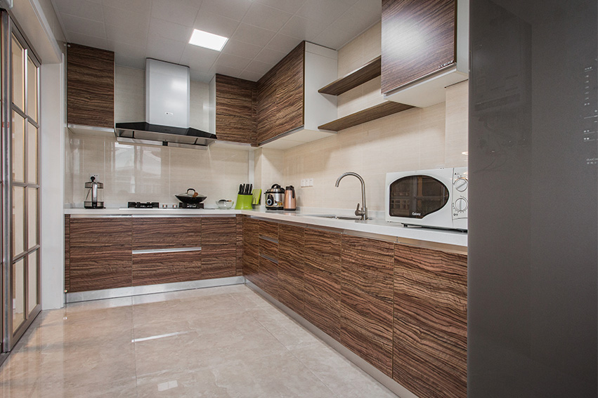 厨房的装修也要注意与整个家装的装修风格相一致,不然会有点杂乱之感,应注重厨房与整个空间的协调一致。