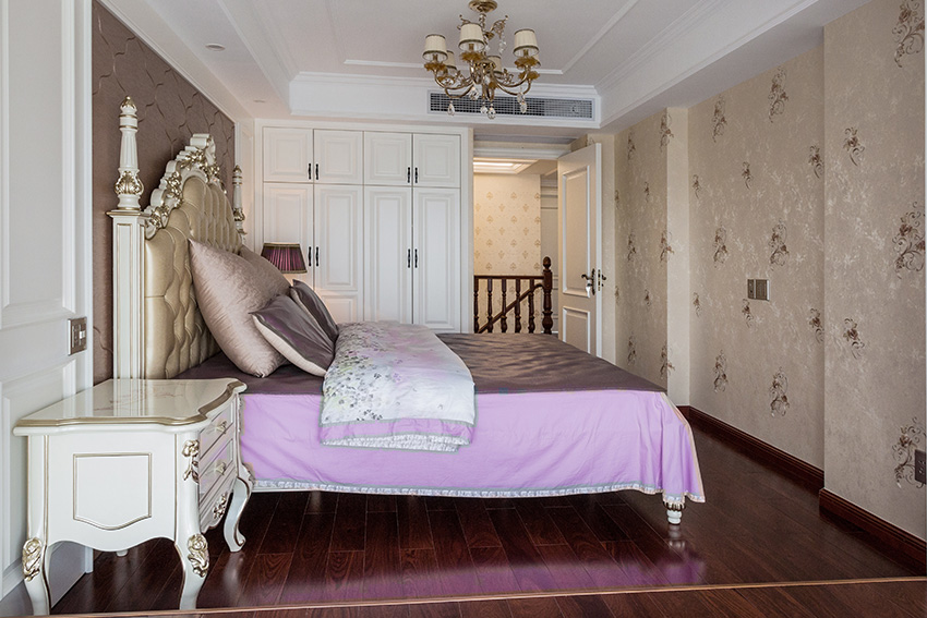 卧室设计时要合理地布局,比如将衣柜紧靠墙体的一面,梳妆台也是要紧靠墙的一面,从而令整体的空间更有秩序,整齐。