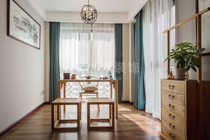 2、新中式风格的装修比较讲究空间上的层次感,在空间的隔断上,常使用屏风等家具,通过这样的风格展现出中式家庭的层次感,加上简约风格的融入,整体的空间也不会太过于端庄压抑。