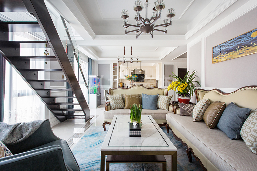 纵观所有的法式风格装修,都离不开豪华家具的布局搭配,浪漫的法国人同时也是非常讲究、重视生活品质的,因此在整体的房屋架构上,法国设计师大多偏爱以对称的轴线和奢华的装饰品来营造出一种典雅高贵、大气恢弘的感觉。