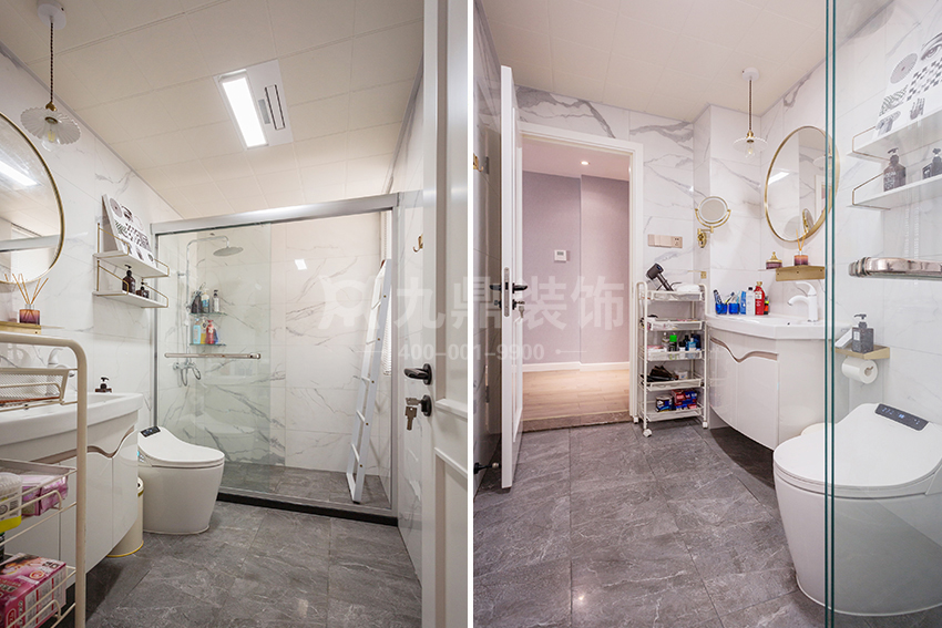 2、玻璃半隔断:价格1000-2000元左右。当然了,也可使用浴帘。
