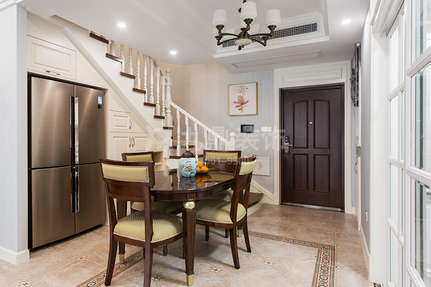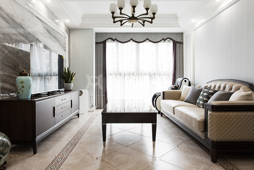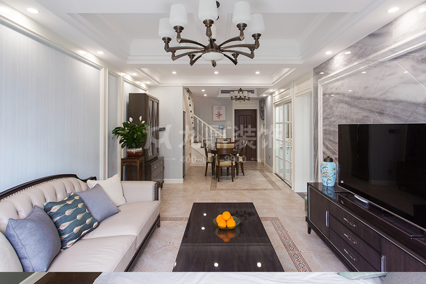 客厅作为待客区域,一般要求简练明快,一起装修较其它空间要更明快光鲜,通常运用许多的石材和木饰面装饰。美国人喜爱有前史感的东西,这不只反映在软装摆件上对仿古艺术品的喜爱,一起也反映在装修上对各种仿古墙地砖、石材的偏心和对各种仿旧工艺的寻求上。总体而言,美式田园风格的客厅是宽阔而赋有前史气息的。