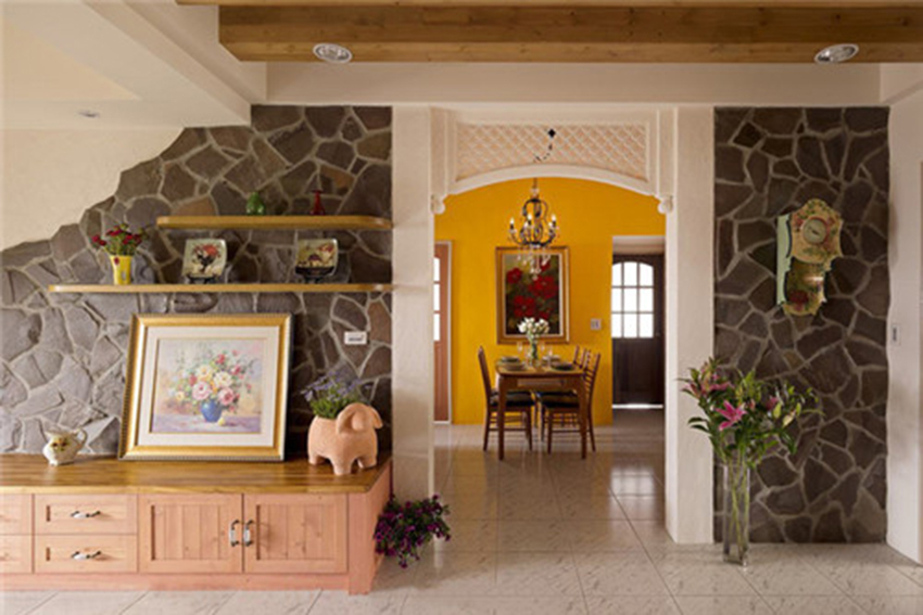 5、在室内装饰上,西班牙风格大量采用了材感硬质的材料、无序的拼图、光滑釉面。以及手抹墙面也常被用在室内设计上,这种的原始设计风格会给人以非常温馨的感觉,以西班牙质朴和传统的特质来烘托室内的气氛。