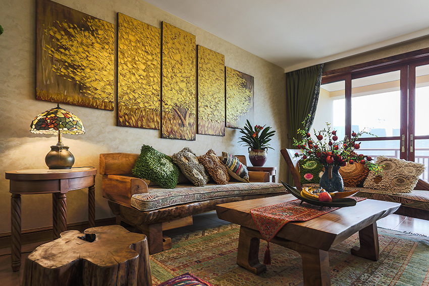 取材自然是东南亚家居最大的特点,由于地处多雨且富饶的热带,东南亚家具大多就地取材,比如印度尼西亚的藤,马来西亚河道里的风信子、海藻等水草,以及泰国的木皮等纯天然的材质,都散发着浓烈的自然气息。