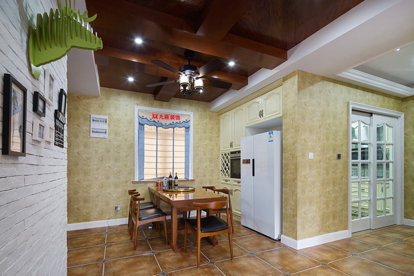 其次,美式乡村风格的设计除了颜色上的讲究,在进行布局的时候则是比较随意,整个居家氛围会感觉比较的轻松,所以餐厅的布局时候将餐桌放置在中间的位置即可,进行一些特殊的设计,除非您是一个风水上的爱好者。对于美式乡村的卧房,家具的摆放就更是这样了,床的两边布置上床头柜和美式乡村风格台灯就更加的合适了。
