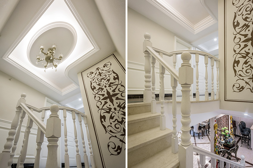 新古典主义以尊重自然、追求真实、复兴古代的艺术形式为宗旨,特别是古希腊、古罗马文明鼎盛期的作 品,或庄严肃穆、或典雅优美。新古典主义风格还将家具、石雕 等带进了室内陈设和装饰之中,装饰以青铜饰面,采用扇型、叶板、玫瑰花饰、人面狮身像等。