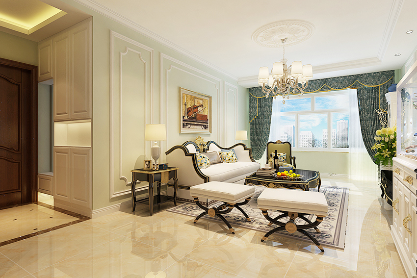 典型的欧式古典风格,以华丽的装饰、浓烈的色彩、精美的造型达到雍容华贵的装饰效果。欧式客厅顶部喜用大型灯池,并用华丽的枝形吊灯营造气氛。门窗上半部多做成圆弧形,并用带有花纹的石膏线勾边。室内有真正的壁炉或假的壁炉造型。墙面用高档壁纸,或优质乳胶漆,以烘托豪华效果。