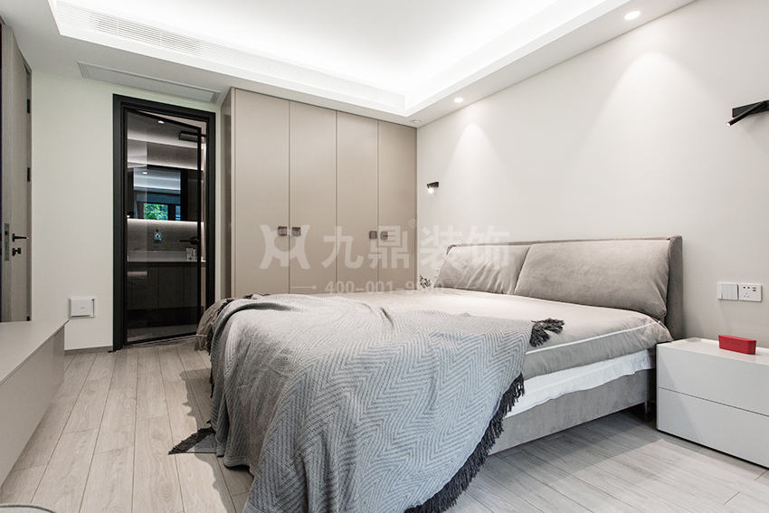卧室作为休息、睡觉的地方,应该注意避免来自“外界”界的干扰,因此,在进行卧室设计时,我们不建议大面积使用透明玻璃类的材料,用在与其他居室相衔接的墙体上,以保证卧室内的隐私。