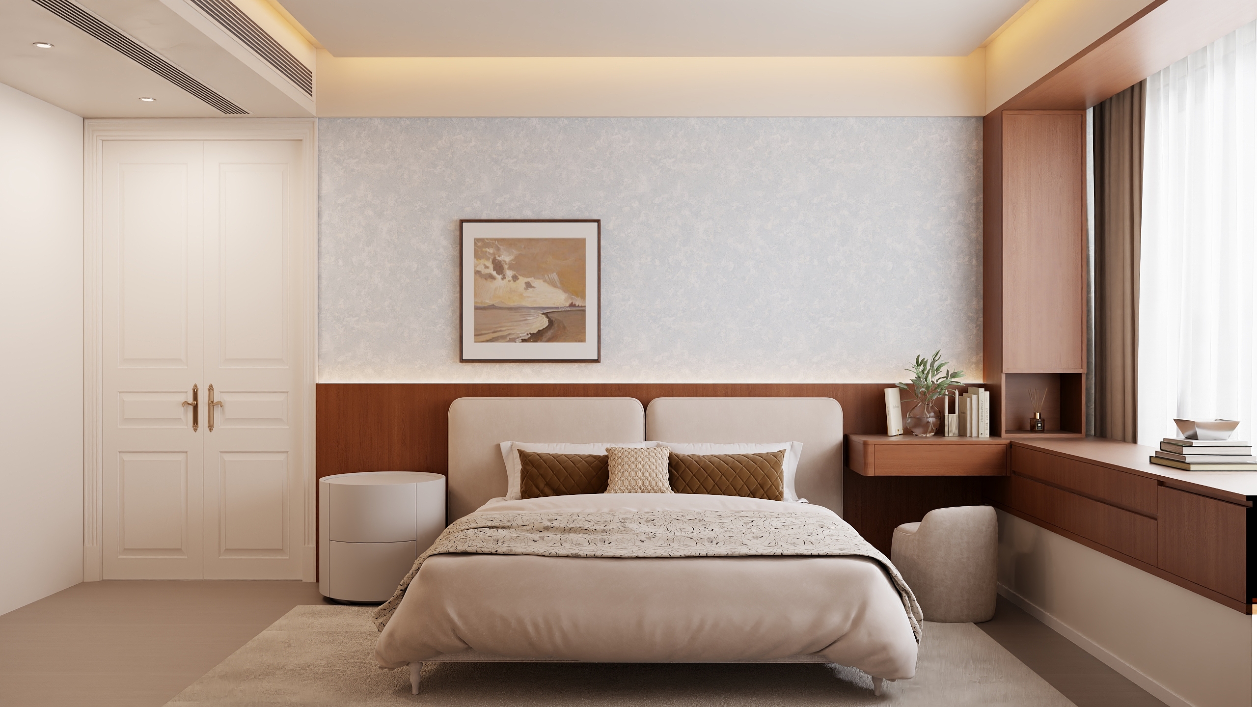 我们倡导 “设计先行,软硬一体” 。在设计初期,就将定制柜的立面与软装的色板、材质样本进行整体搭配模拟,确保从色彩、材质到比例的统一。我们的全案团队会统筹从硬装施工到软装定制的全流程,确保每一件定制产品在正确的时间节点测量、生产、安装,避免衔接失误,让您在杭州的家,从骨骼到肌肤都完美契合。